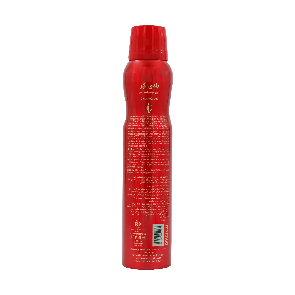 قبل از مصرف اسپری بدن زنانه بادی کر مدل Casamorati را تکان داده و از فاصله 15 سانتی متری اسپری نمایید.