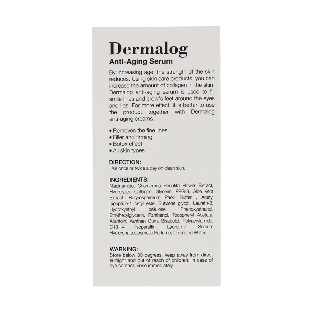سرم ضد چروک درمالوگ محصولی لوکس و تخصصی برای مراقبت از پوست است که توسط شرکت ماه بانوی زیبای پارس در ایران و تحت لیسانس شرکت ایتالیا تولید میشود. این سرم در یک بطری شیشهای با درب قطره چکاندار عرضه شده که علاوه بر ظاهر شیک و حرفهای، استفاده از آن را بهداشتیتر و دقیقتر میسازد. از آن سو کیفیت بالای بسته بندی در کنار فرمولاسیون پیشرفته، نشان دهنده استانداردهای سختگیرانهای است که برند درمالوگ برای محصولات خود در نظر گرفته است.