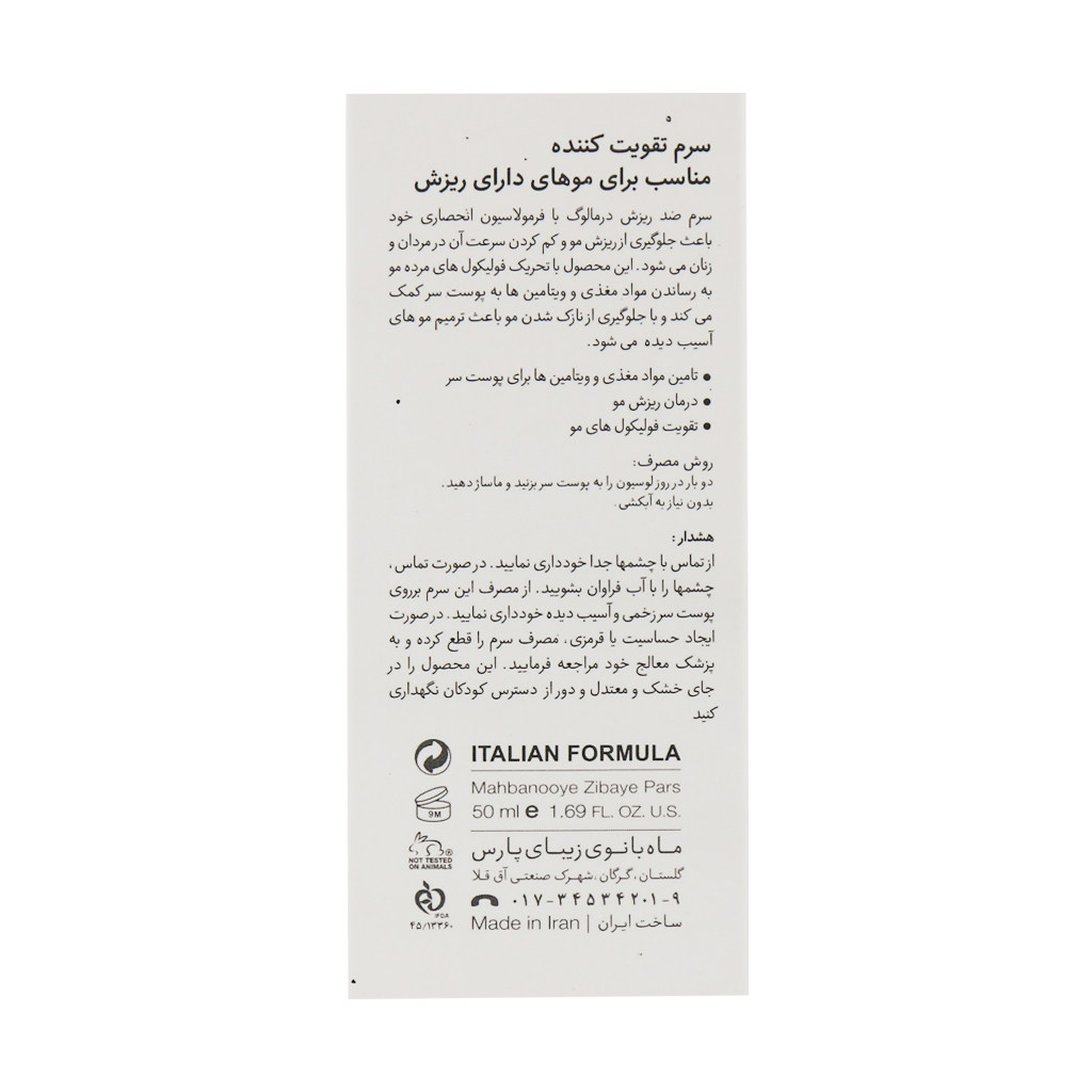 سرم تقویت کننده و ضد ریزش مو درمالوگ در بطری شیشهای 50 میلی لیتری با قطره چکان طراحی شده است که استفاده از آن را آسان، بهداشتی و دقیق میکند. کیفیت بالای بسته بندی نیز علاوه بر حفظ پایداری مواد فعال، از آلودگی یا هدر رفت محصول جلوگیری میکند. سرم ضد ریزش مو درمالوگ با فرمولاسیونی پیشرفته و تحت لیسانس ایتالیا تولید شده و تمامی مراحل ساخت آن در شرکت ماه بانوی زیبای پارس با رعایت استانداردهای روز دنیا انجام میشود. از آن سو ترکیبات سرشار از ویتامینها، مواد معدنی و عناصر تقویتی در این محصول، تغذیه عمیق پوست سر را تضمین نموده و محیطی ایدهآل برای رشد و تقویت موها فراهم میآورد. در نظر داشته باشید بهترین همراه برای این سرم، خرید شامپو ضد ریزش و استفاده از آن است.