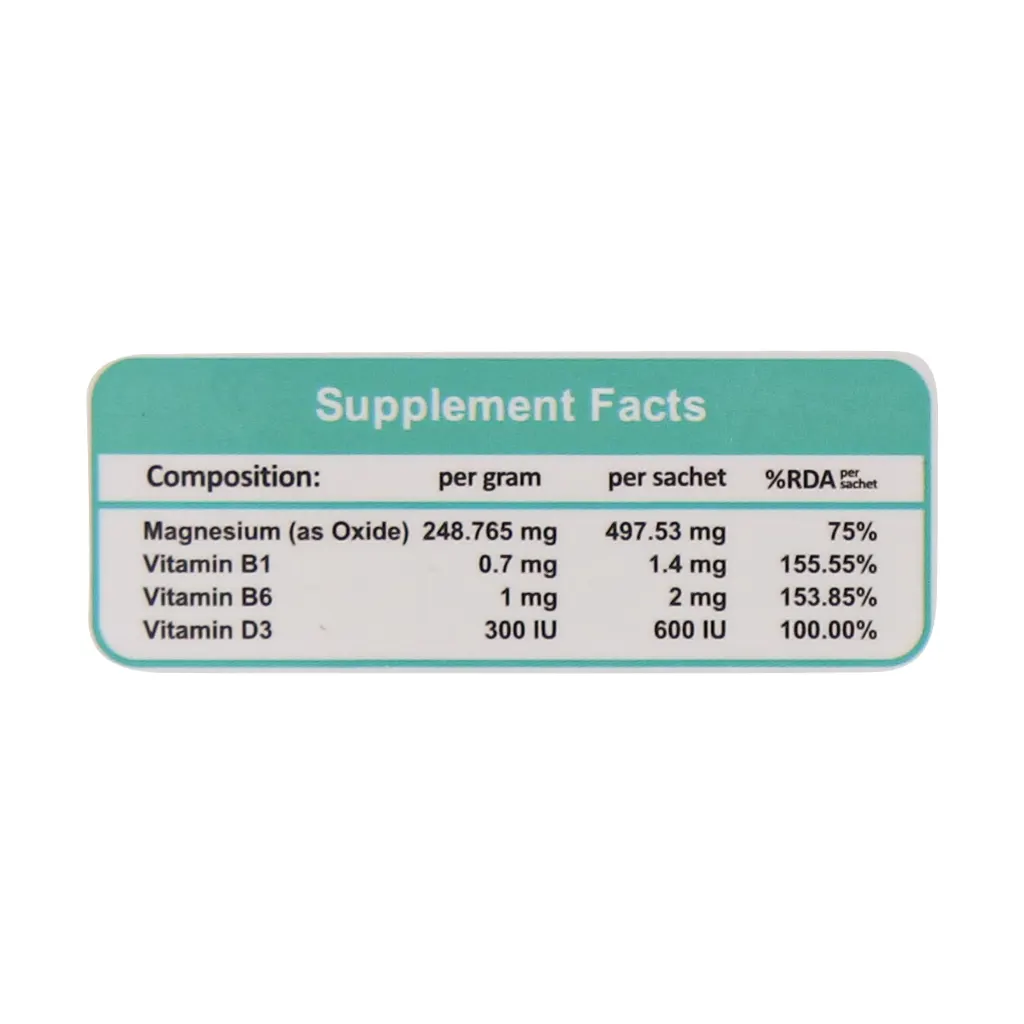 ساشه مگنی دی گلدن لایف یک مکمل بسیار کارآمد حاوی 497.53 میلی گرم منیزیم اکساید، 1.4 میلی گرم ویتامین ب1، 2 میلی گرم ویتامین ب6 و 600 واحد ویتامین د3 است که در قالب ساشههای زیرزبانی به شما ارائه میشود. این محصول با فرمولاسیون منحصر به فرد به ویژه برای ورزشکاران و افرادی که با استرس، خستگی و مشکلات خواب دست و پنجه نرم میکنند، یک گزینه ایده آل است.