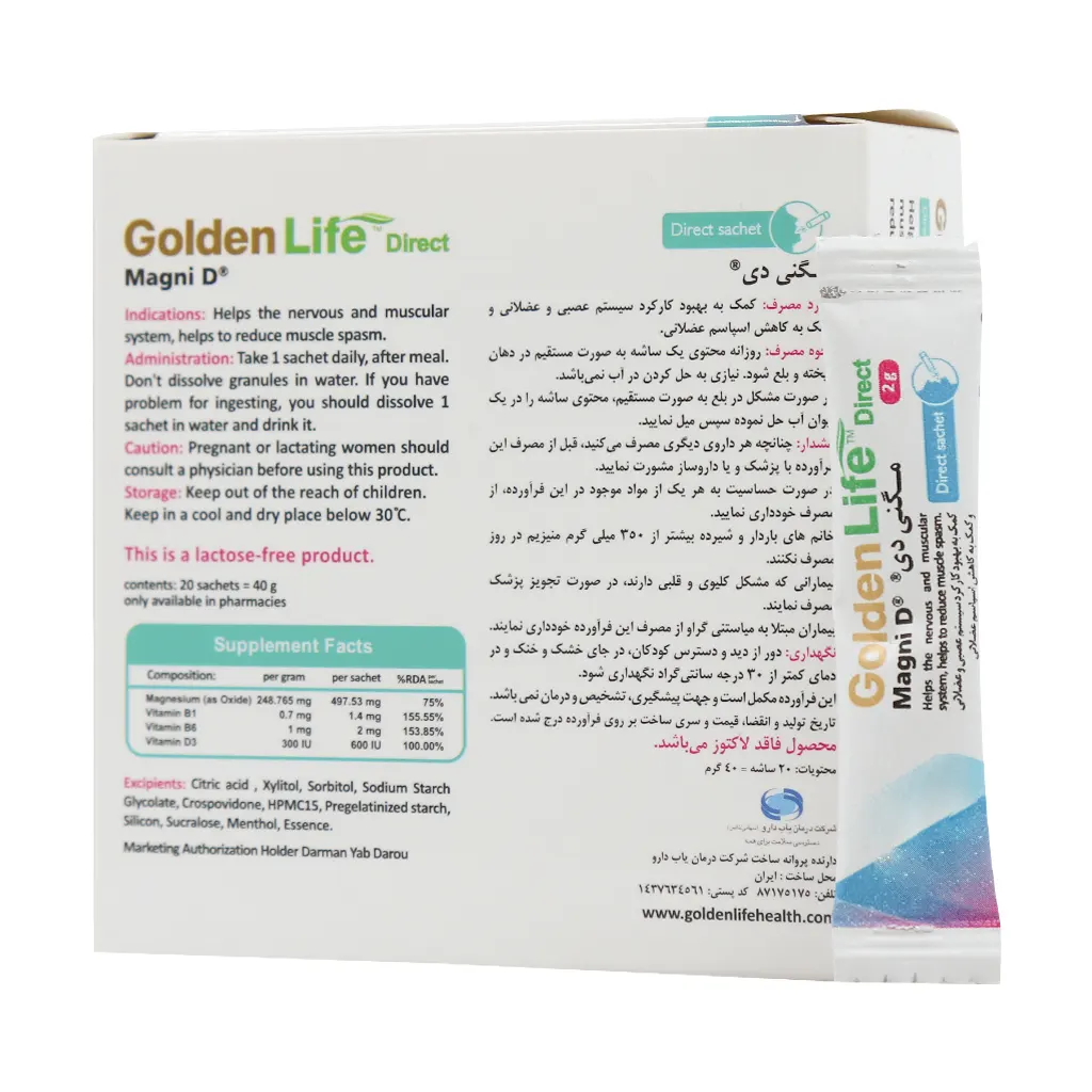 مگنی دی به دلیل فرم ساشهای خود، به سرعت در دهان حل شده و به سرعت جذب میشود؛ همین امر سبب میشود که اثرات آن سریعتر به بدن منتقل شود. شایان ذکر است مگنی دی گلدن لایف به صورت ساشه در تعداد 20 عددی در جعبه مقوایی بسته بندی میشود و تحت لیسانس برند گلدن لایف استرالیا بوده و در ایران توسط شرکت درمان یاب دارو تولید میشود.