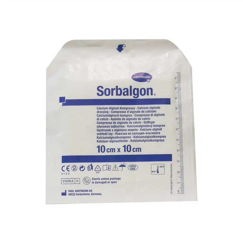 پانسمان Sorbalgon از فیبرهای آلژینات کلسیم ساخته شده است که در اثر تماس با نمک سدیم موجود در خون همچنین اگزودا زخم یک لایه هیدروفیلی غیر چسبنده ایجاد می کند. این لایه ژل روند التیام زخم را بهبود می بخشد. پانسمان سوربالگن درسایز های مختلف بسته به نیاز بیمار فراهم شده است. از پانسمان سوربالگن جهت بهبود زخمهای خارجی و حاوی اگزودا همچنین درمان خونریزی های زخم مناسب است. ژل تشکیل یافته پروسه بهبود زخم را بهبود میبخشد. از این پانسمان بر روی انواع زخمها مانند زخم های ایجاد شده در اثر حادثه و تومور های جراحی، سوختگی ها، زخم های عمیق، آبسه و… استفاده میشود. برای زخم های عمیق و فیستول Sorbalgon T در دسترس است.