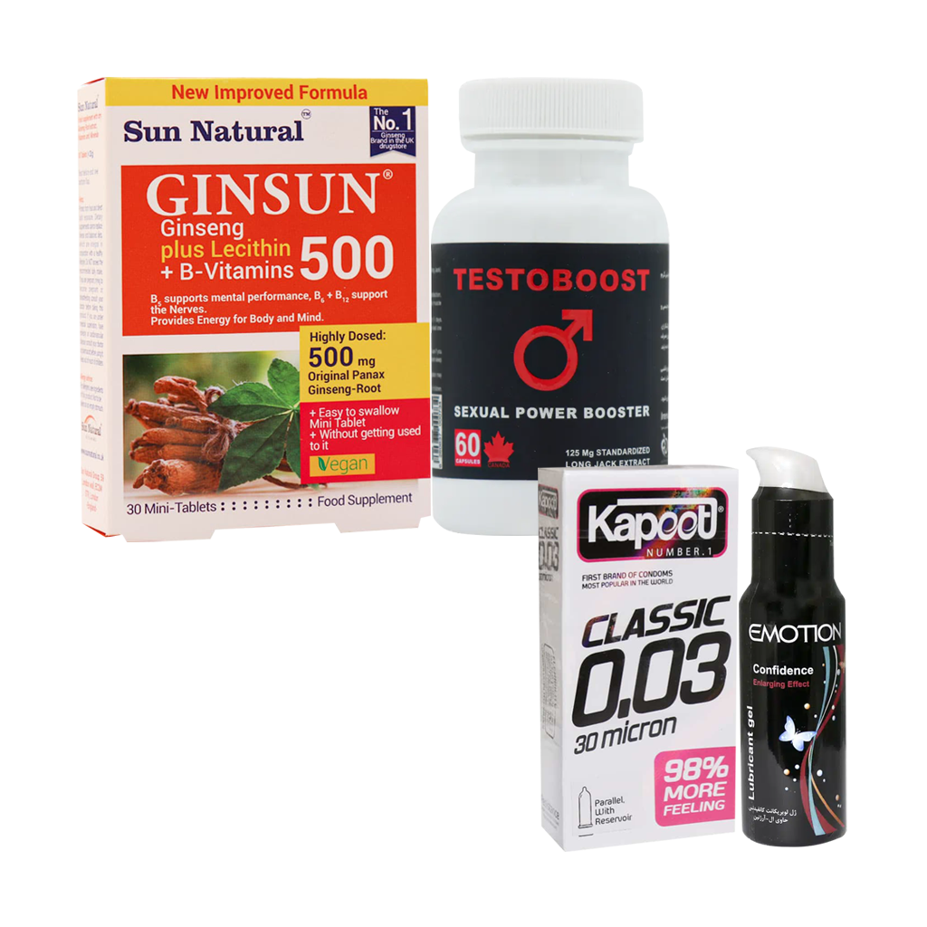 پک تقویت میل و توان جنسی آقایان یک مجموعه تخصصی از مکملهای غذایی و دیگر محصولات است که برای بهبود عملکرد جنسی، افزایش میل و تقویت انرژی در آقایان طراحی شده است. در این پک موارد زیر وجود دارد: