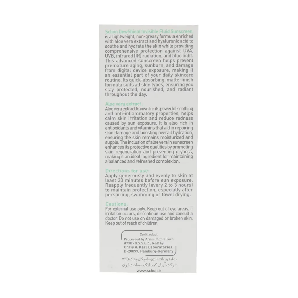 ویژگی های فلوئید ضد آفتاب دیووشیلدSPF50 شون
