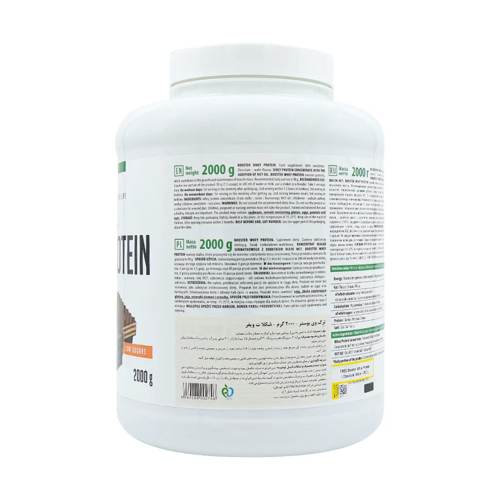 پودر وی بوستر 2000 گرم ترک نوتریشن یک مکمل پروتئینی با کیفیت بالا است که برای ورزشکاران حرفهای و افرادی که در حال افزایش حجم عضلانی هستند، طراحی شده است. این محصول حاوی پروتئین وی کنسانتره با درصد بالای 91 درصد است که به سرعت جذب عضلات میشود و به رشد و ترمیم عضلات پس از تمرینات سخت کمک میکند. این مکمل بدنسازی حاوی روغن MCT است که انرژی سریع و ماندگاری به بدن میدهد و باعث بهبود عملکرد ورزشی و سوخت و ساز چربیها میشود.
